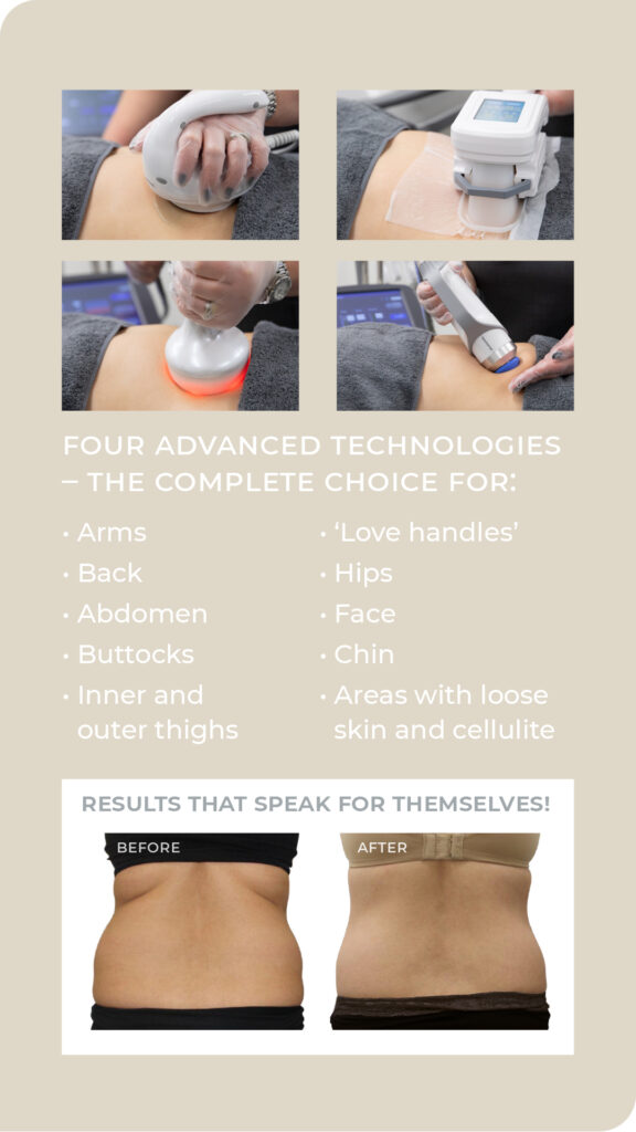 Using the 3D Lipo UltimatePro we offer a complete non-surgical option for treating fat reduction, cellulite and skin tightening. Combining four advanced technologies, we are able to offer a completely bespoke approach to target your specific concerns.